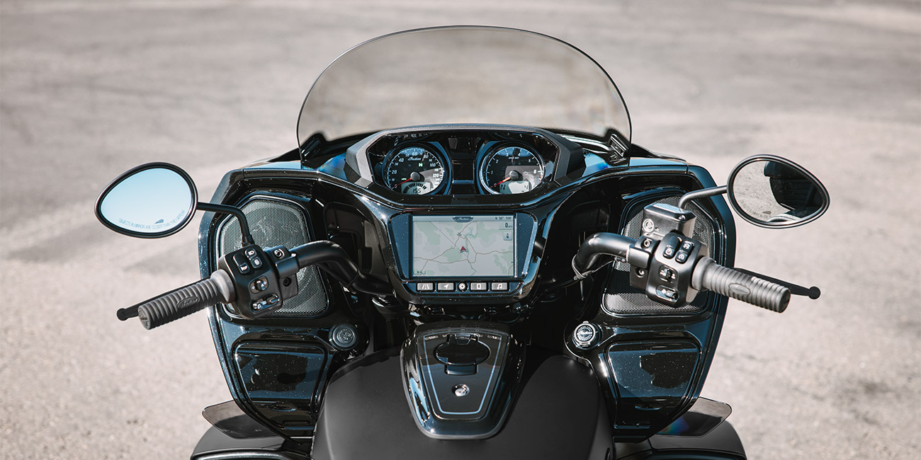 | Ride Command® | 7-Zoll-Display mit vorinstallierter GPS-Navigation, Apple CarPlay®, Bluetooth®-Konnektivität, konfigurierbaren Anzeigen, Fahrstatistiken und weiteren Funktionen. |